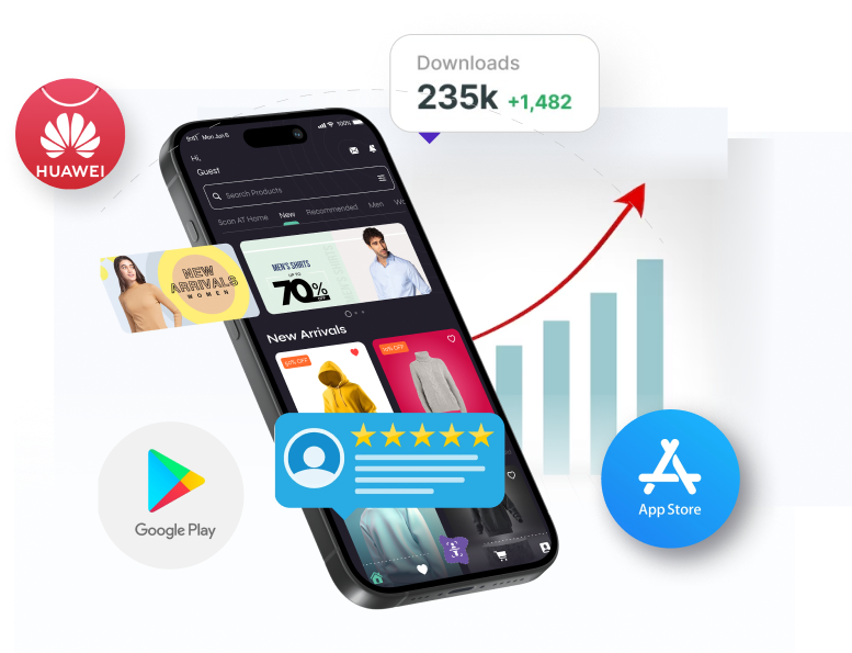 We monitor and respond to user reviews, address negative feedback, and promote positive reviews. This helps our app clients maintain a positive app reputation and boosts user confidence.